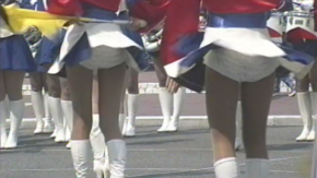 AI画像・CG画像 【AI動画】ある黄色い衣装の鼓笛隊の一日(後篇)・押し相撲やステージ等で白アンスコ丸見え