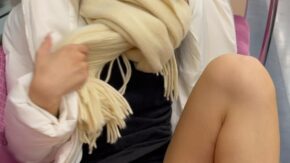 女子大生 JD盗撮日記63 初登場!!白ダウンと白マフラーが激カワなあざとい系JDを電車内で盗撮【※完全主観28分超撮影】