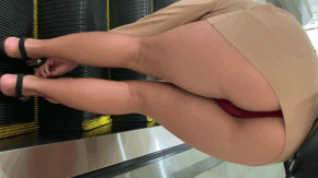 盗撮風・パンチラ・逆さ 【街鳥】商業施設エスカで大胆尻だしTバック晒しのお姉さん