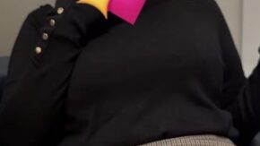 店員・OL・働く女性 【再販】(電車対面)(顔出し)黒のワンピースにむっちり美味しそうに実っちゃったボディを包み込んで…熱視線に心乱されちゃうOLお姉さん