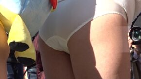 コスプレ・キャンギャル 【再販】スレンダーキャンギャルが高いステージから挨拶するのでパンチラ撮り放題