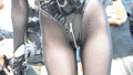 白ミニスカから伸びたスラリとした美脚!そしてその付け根にはクッキリパンスト越しの白生パンツ!パンストのスジもクッキリでより生生しいイヤラシさ!基本後ろ向いたりしないのですが前側三角デルタは見えっぱなし!けしからん!