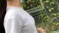 光量に恵まれ、パンスト着用の白パンティが形の良いお尻に密着している