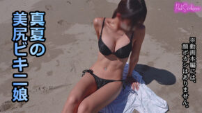 女子大生 海水浴場でこっそり露出するビキニ娘(1)ラッシュガード尻、黒ビキニ水着