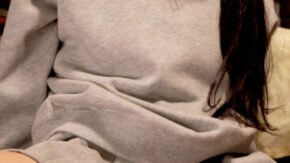 巨乳・お尻・美脚 高身長生足美脚JDのグレー靴下と黒スト靴下重ね履き足裏
