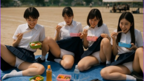 AI画像・CG画像 【AI動画】ある鼓笛隊の一日・公園で遊んで白アンスコ丸見え
