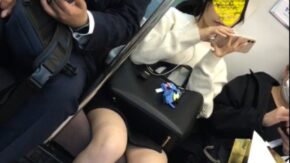 店員・OL・働く女性 【再販】(電車対面)(顔出し)タイトミニからむき出しの…むちむちなパンストふとももを…正面からタイトミニ▼を至近距離で観察されちゃったO
