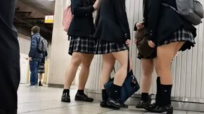 制服女子 遠距離からの四人組