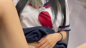 制服女子 デパートのトイレでこっそりオナニーしちゃうJK198 色白スレンダーJKがクチュ音を響かせて激しい痙攣イキ
