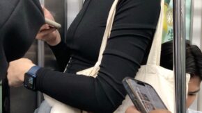 盗撮風・パンチラ・逆さ 【再販】街の風景9 寒さ深まる季節に電車内に輝く神々しいおっぱい♡