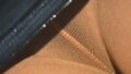 そして今度はお尻突出し四つん這いポーズでも生パンツ飛び出しその横からはビラビラ横の部分が!