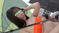 ピンクの紐ビキニちゃん 海辺のテラスで接写しまくり