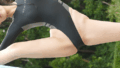 最後はベンチで純粋なM字から足を抱えての禁断のM字まで披露。