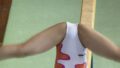 次に仰向けになってもらい、脚を少し開いた状態でまっすぐ上げる脚のトレーニングです。そのあと、仰向けのままM字開脚の姿勢を取ってもらい、股関節の柔軟を行いました。この時、僕の股間がギンギンになってしまいました…なんと股間をよく見ると、トレーニングウェアから莉乃さんの陰毛がはみ出ていたんです!!映像にはメガネカメラでしっかりその様子も収めているのでぜひ楽しんでいただきたいです。