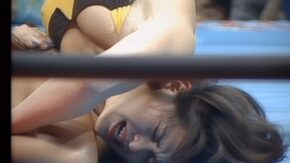 スポーツ・水着・ブルマ モデル並みの美貌で男性ファンに大人気のセクシー女子プロレスラー 股間丸出しで大の字にダウン!