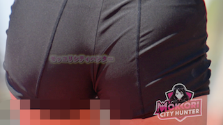 最初のシーンは待機シーンから始まります。セミロングの黒パンツですが本番は跳躍の時です!棒を使い上に飛ぶ瞬間最高に食い込んでる!セミロングでもこのアングルなので最高なんですよね!また上に跳ぶ瞬間もいいのですが下に落ちてでんぐり返しにたいになるポーズも最高でした!これもこのアングルのおかげです!