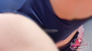 01:43 再び後ろを向きます。窓から入る太陽光及び白地のレオタードと汗があいまって、アンダーウエアがよく浮き出ています。
