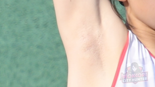 前半は主に待機シーンで展開されていきます。JDなのでオシャレもバッチリ。美しいネイルが両手に施されておりました。その両手で腰に手を当てたり、バンザイしたりと見所多数あり!バンザイシーンでは脇にズーム!ちょっとお姉様処理が甘いんではないですか?とも言えるような脇を堪能ください!約6分までが準備シーンでそれ以降は本番の跳躍シーンで展開!スタートダッシュ成功して見事な跳躍!大成功だったので着地のインパクトがエグすぎた!お得意のユニが捲れまくりました!そんなんだから下の黒生Pもはみ出まくりもうモッコリ最高潮!