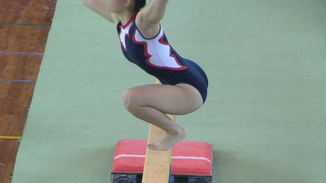 00:51 最初のスタートは、B難度のしんぴ倒立で平均台に登ります。