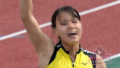 次にストレッチポールを使って胸郭の柔軟。「塾でモテそうですね」と話すと「そんなことないです」と照れ笑いする美久さんが可愛い!胸は推定D〜Eカップくらいでしょうか、スポーツウェアの生地が薄いので胸の柔らかさが強調されていました。
