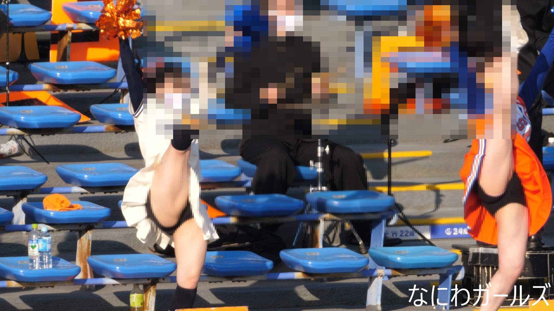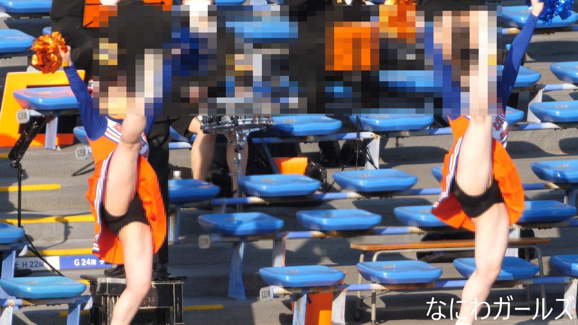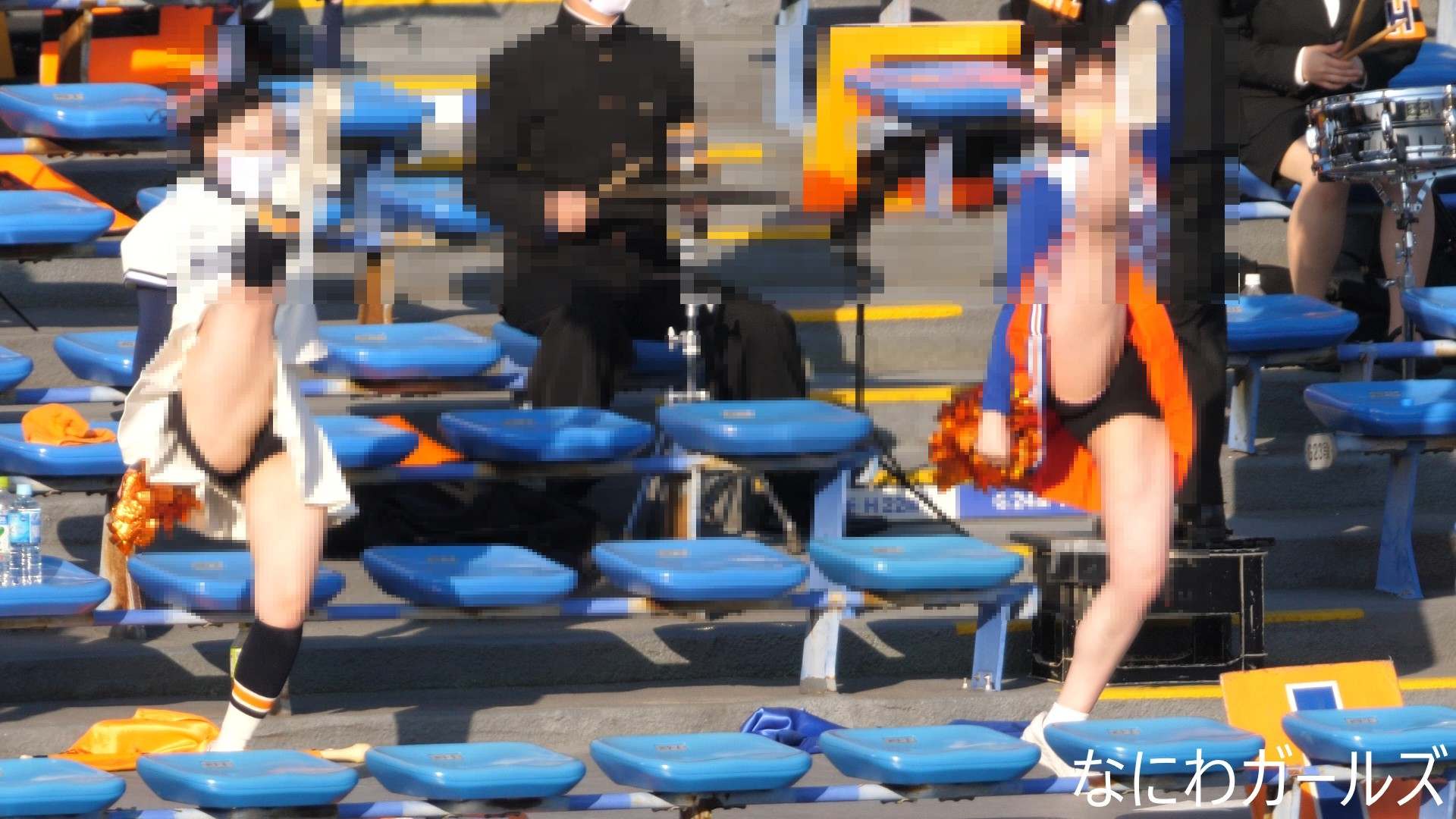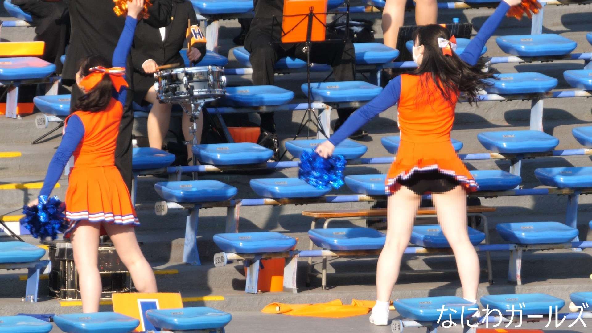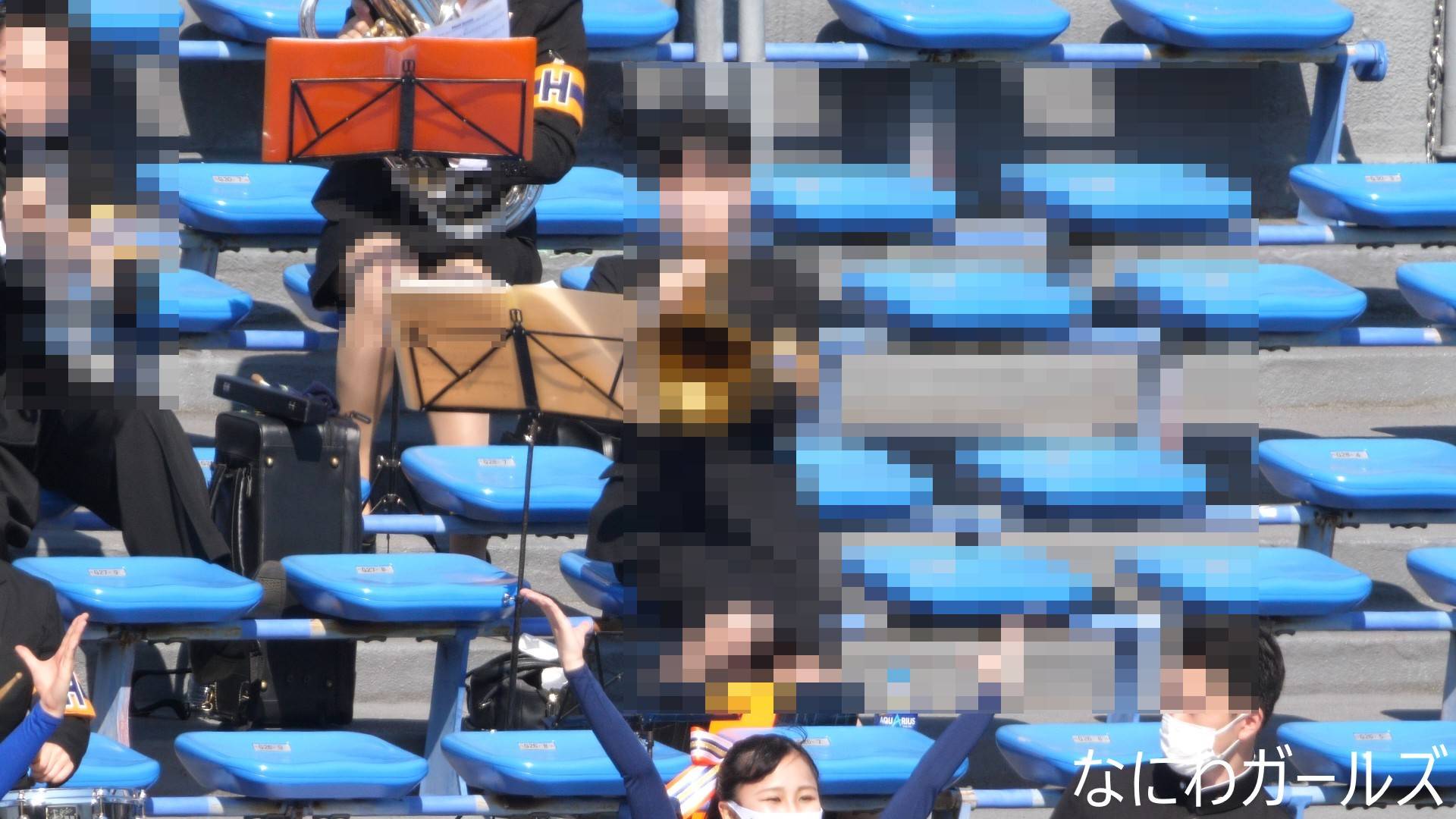 吹奏楽の応援は…応援曲の合間に…座席をまたぐ時のスカートたくし上げ⁉そして…演奏しながら…風でスカートがめくれ!デルタ地帯に!純白おパンティーがチラリ!