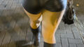 思いっきり丸見えなPラインを見せつけちゃってます。