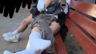 ニーハイソックスごしにくすぐってみると大暴れ。そして貼り付けの刑。おっぱいもみポイントw最大のチャンス。