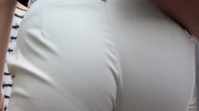 超Sクラスの食い込みエロ尻を堪能!希少なレギンスから自慢のケツ+パン線で男を誘惑!
