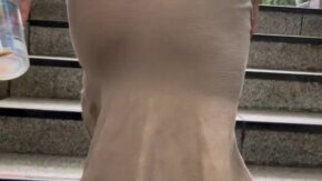 素人女たちのパッツン巨尻を階段下から堪能!自慢のエロヒップをムニュらせつつ浮き出るクロッチで男を誘惑!