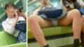 2段目のエスカではエスカの下から覗き込んでいる中年男性がいたので、捲りやライトONは出来ず…でも水平目線でも尻の下肉と食い込んだTは見えてるのでもう露出と変わらない。そりゃこの丈は誰でも見るに決まってる。この日も駅のトイレで速攻シコって帰った。