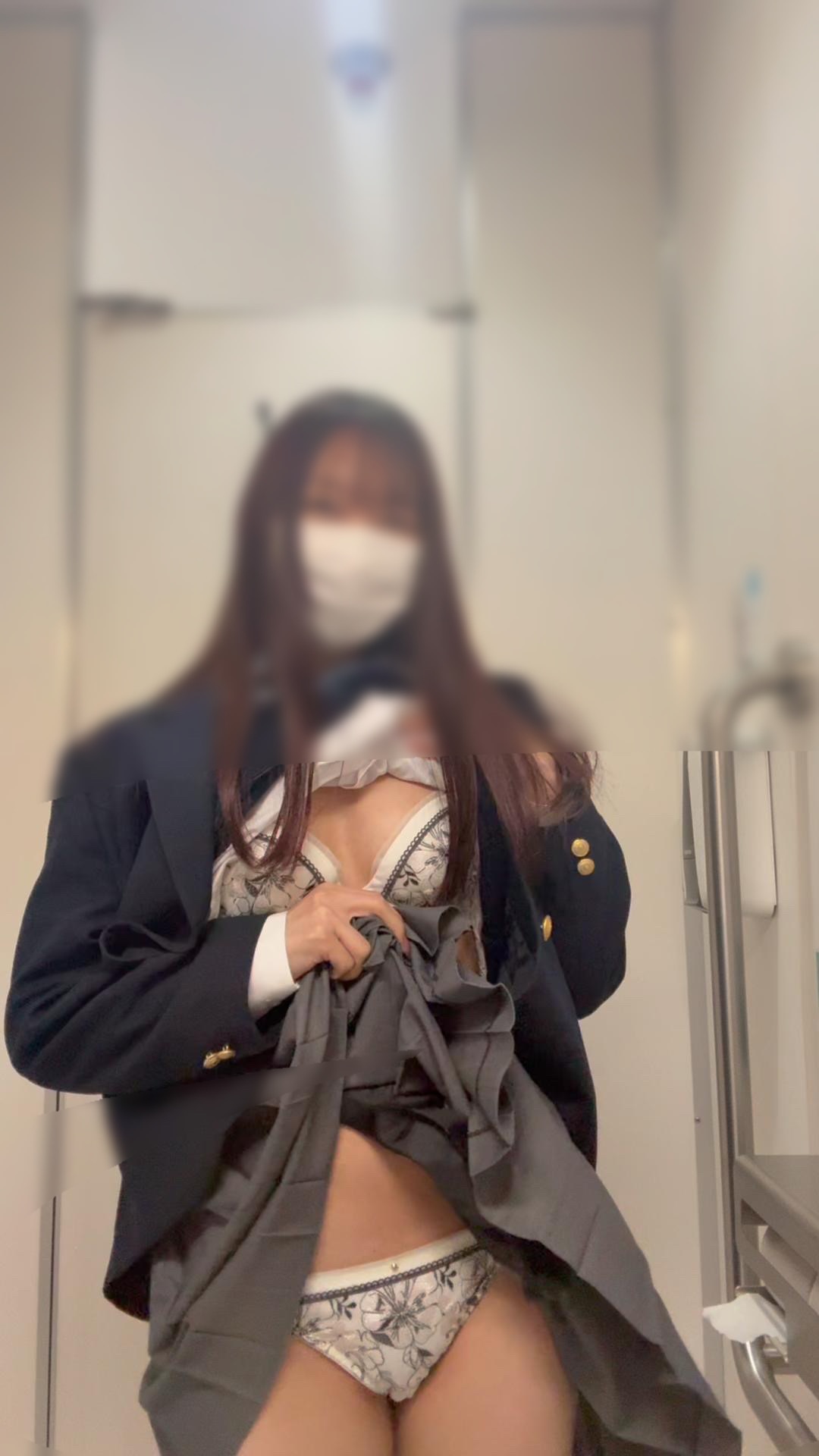 電車を降りて、最後はトイレ内で自撮りパンチラ!!
