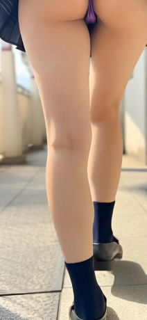 風でスカートがめくれてパンツが丸見えのくせに、そんなのお構いなしで歩きスマホしてます……けしからんですね。。