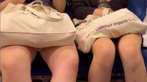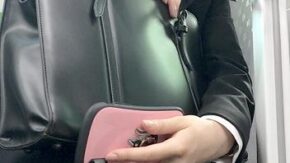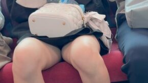【再販】(電車対面)(顔出し)フロントスリットのスカート…鞄の下に隠れるえちえち▼ぞーんをサルベージ…可愛いのJDお姉さんを観察