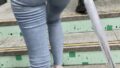 スキニーデニムはデカいケツだけではなく、美脚と美尻を活かすのにも最適で階段から見上げることでじっくりと味わえます。