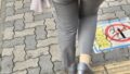 まずは、珍しいデニム風のパツパツレギンスから美尻を突き出すお姉さんが登場。