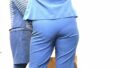 スタッフと会話しながらメモを取ったり体験した事を書き込んでいます。パンツは結構エグめの角度で食い込んでます