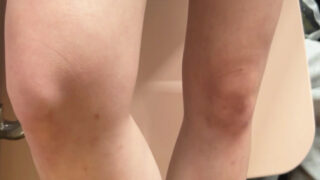 まずはハイソのゴム口部分をぐいっと引っ張るところ。ハイソックスが伸びてリブ部分が透けてるのが見えます。