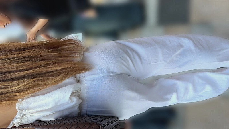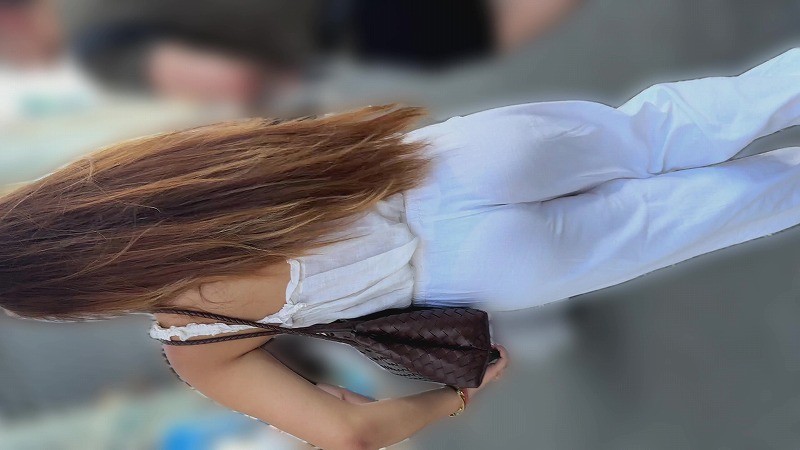 夏らしい薄手のテロテロのパンツを履いたギャルに撮影させていただきました。