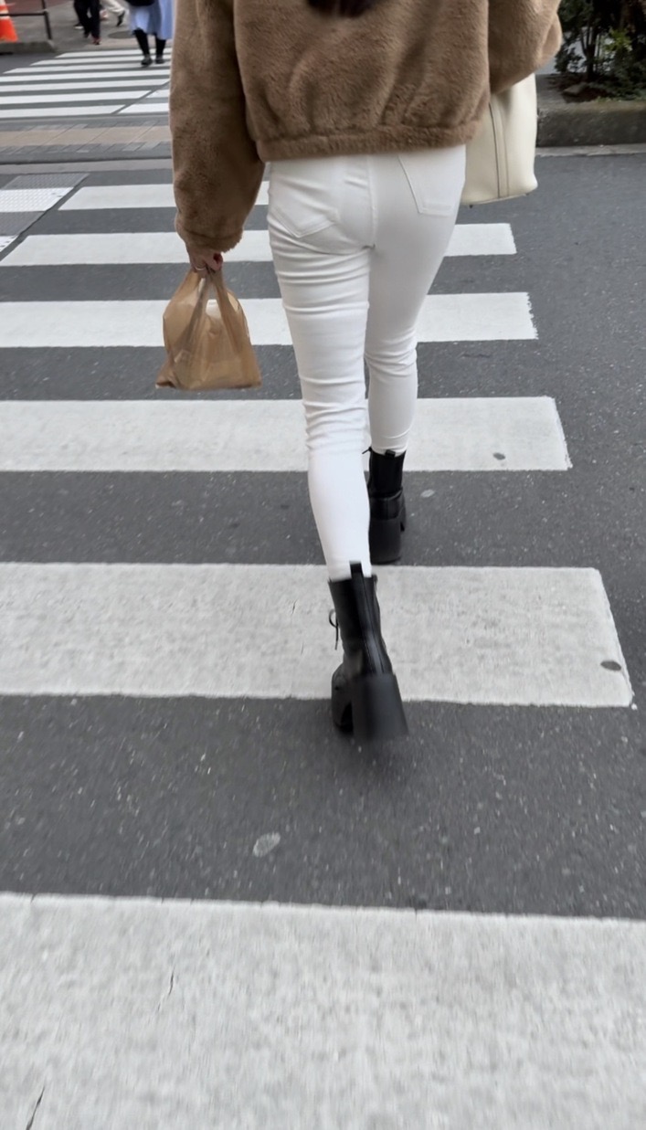 1人目(表題)は茶色のモコモコアウターに白のスキニーパンツのお姉さん!顔は井川遥っぽい雰囲気の美人さん