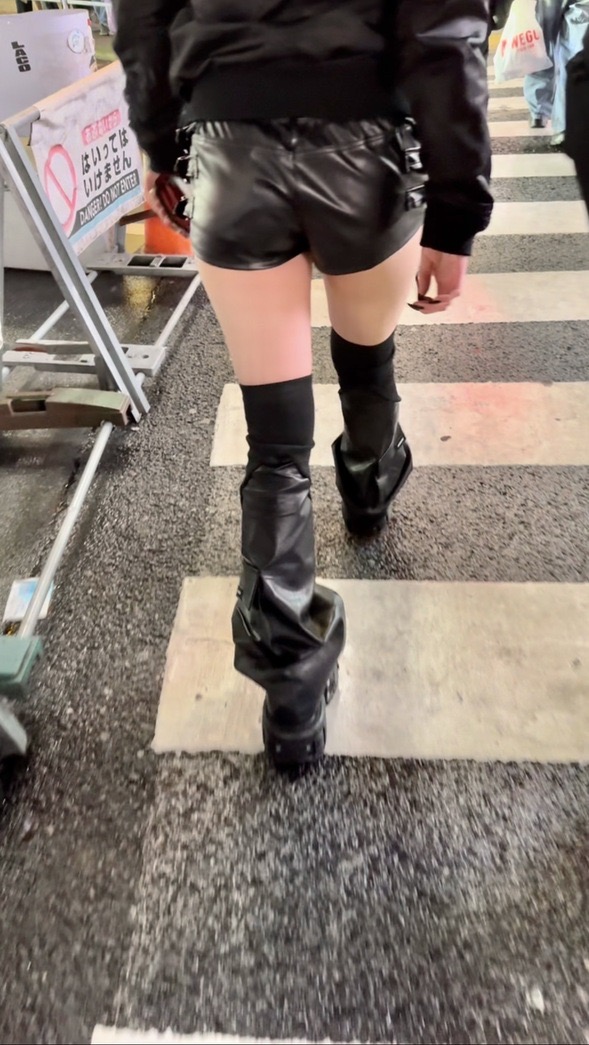 2人目は前身ブラックコーデにレザーのショーパンのお姉さん!