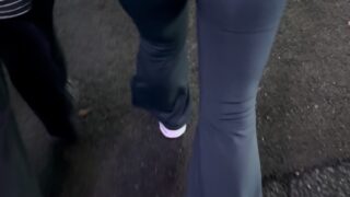 その場に立ち上がったお姉さん、タイトスカートが捲られハミ出たパンティライン、
