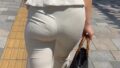 歩くたびに食い込んでパンティーのラインが透けるところが見どころです!