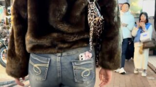 そして恥ずかしげもなくバキバキなパンティラインをさらしていたので、こちらも躊躇することなく撮らせてもらいました。
