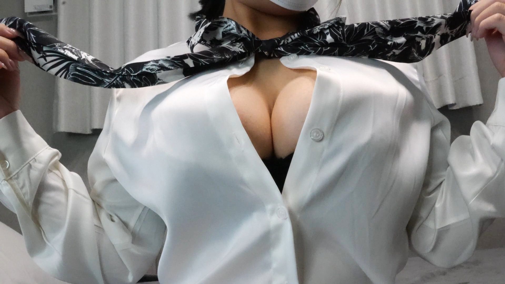 ブラウスの下は黒ランジェリーで統一された神々しい下着と溢れ出る爆乳