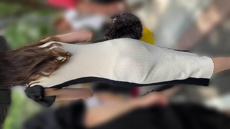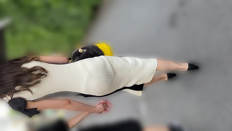 スタイル抜群のスレンダー美女に撮影させていただきました。体のラインを強調するようなタイトなワンピースを着た美女。恐らくキャバやラウンジ嬢でしょう。薄手のニット地のため、エッチなTバックのPラインが浮き出ています。小さなお尻ながら、左右に揺れ動くお尻も最高です\(^_^)/