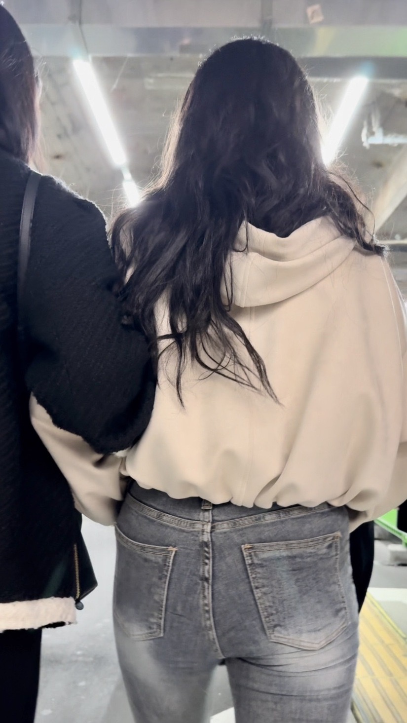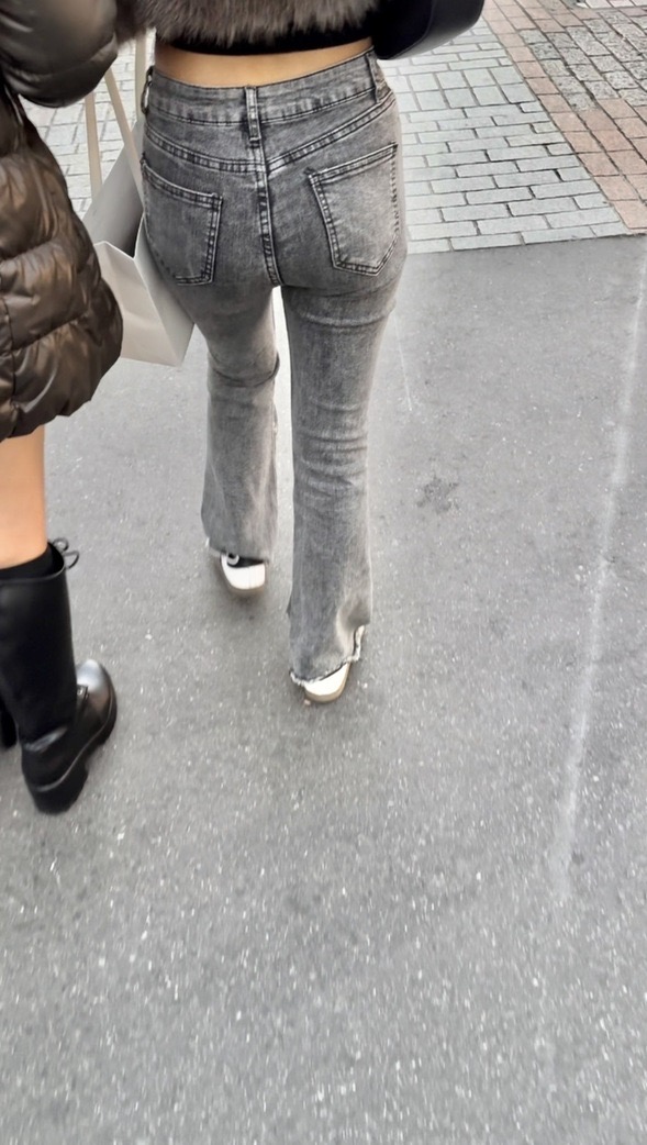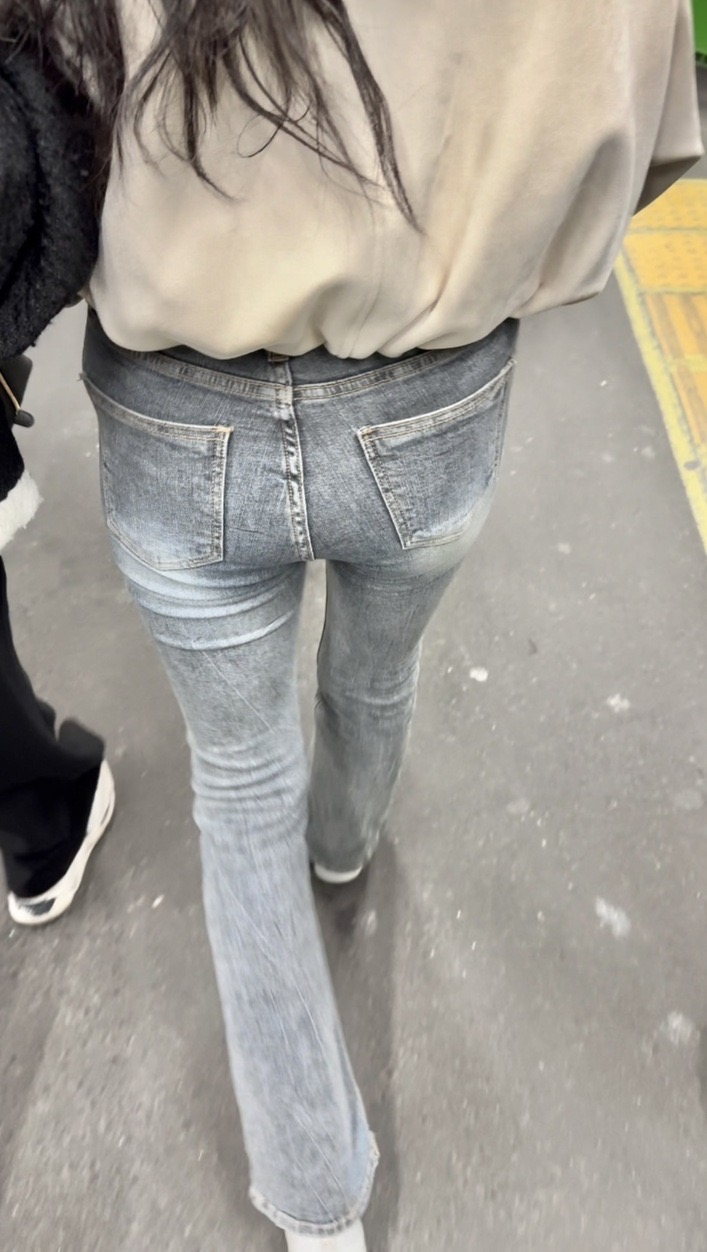 2人目は淡いグレーのピチピチフレアデニムのお姉さん!