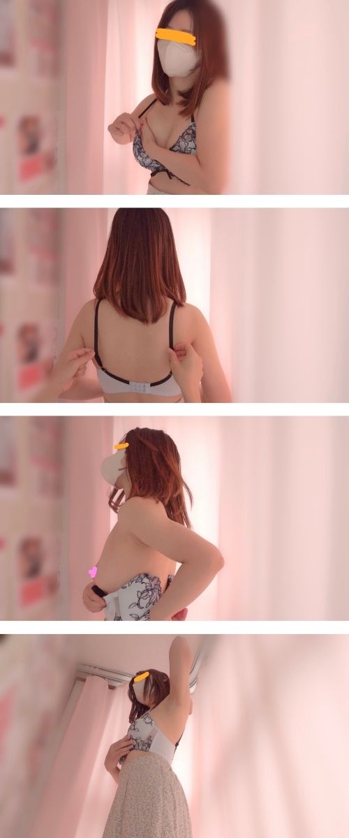 「幼顔ママの試着店員目線バージョン」授乳してから若干お胸の形が気になるようになったとご来店されました。幼い顔とママおっぱいのギャップがたまりません。