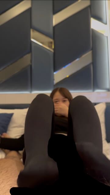 動画後半では黒のストッキングに履き替えてもらいパンツの上からとパンツを脱いでの直接の足コキもしてもらいました