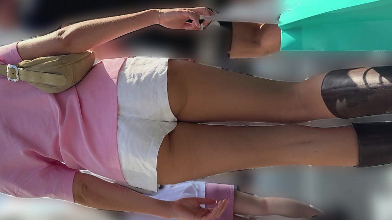 お尻に目を向けると、裾幅のあるショーツのため、下尻が隠れず、もろ出しの状態。その引き締まったお尻と、プリンと張った下尻、さらにスタイル抜群の美脚。すれ違う男の目線を釘付けにしていました。