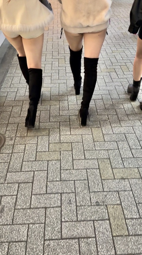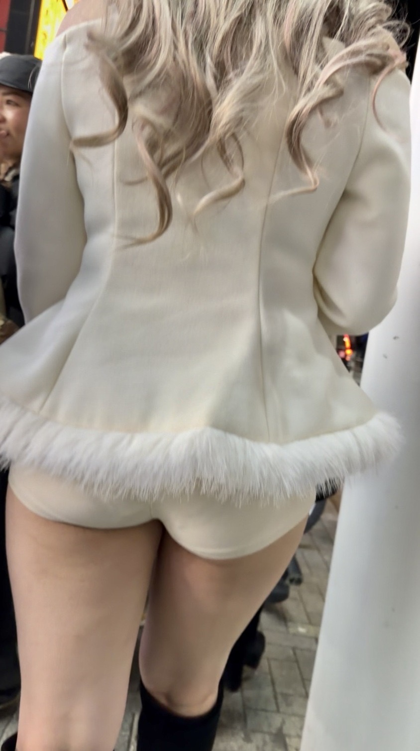 パッとみて下を履き忘れたのかと思ってしまうくらいの短じかいピチピチのショートパンツ生足のブーツに歩く時に波打つお尻の質感が最高!goodです